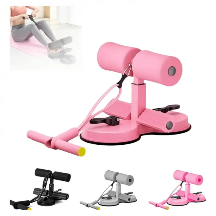 Soporte para ejercicio abdominal de 2 niveles Doble ventosa para mayor succión al piso + Grip con banda elástica Colores gris, negro y rosa Se envía surtido